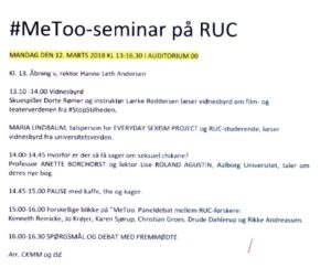 Undertegnede har set et opslag om et “MeToo-seminar på RUC” d. 12. marts.